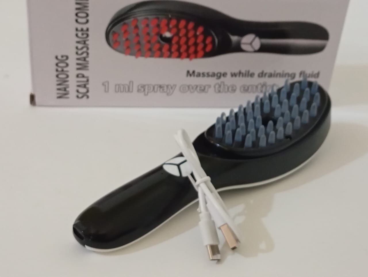 The Electric Hair Comb Massage or 4 in 1 rechargeable hair comb is a multifunctional scalp care device designed to improve hair health while providing a soothing massage. It combines light therapy, vibration massage, hydration spray, and negative ion technology to deliver complete scalp and hair care at home.